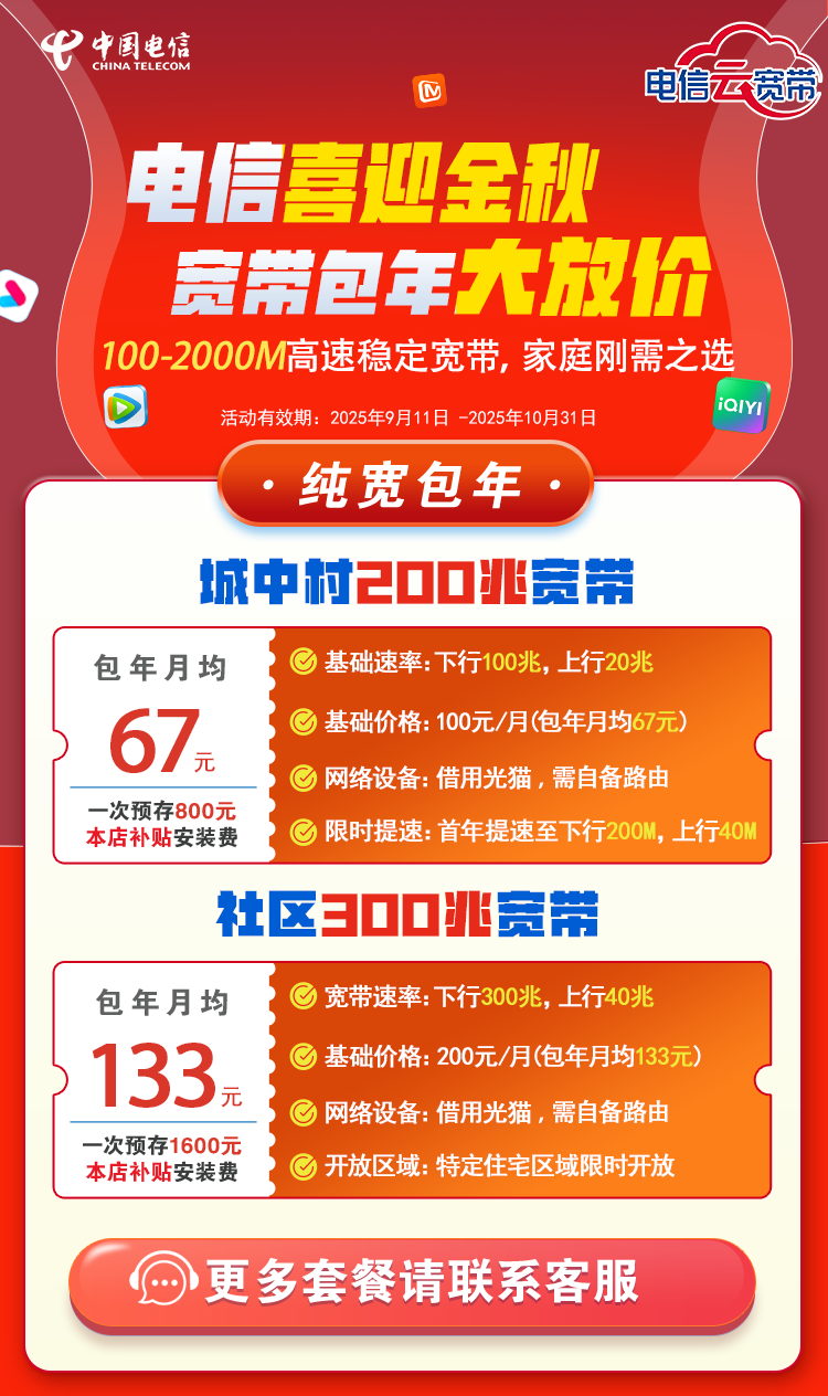 深圳电信宽带价格表2025年_电信宽带受理中心